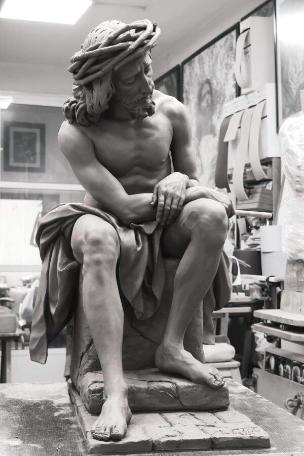 Os presento mi señor de la coronación de espinas, el primer encargo sobre esta iconografía, el boceto está modelado en terracota roja, estudio previo antes de la talla en madera de cedro real. He disfrutado mucho con él, a pesar del la dificultad y complejidad anatómica. El destino pronto se desvelará, solo puedo adelantar que …