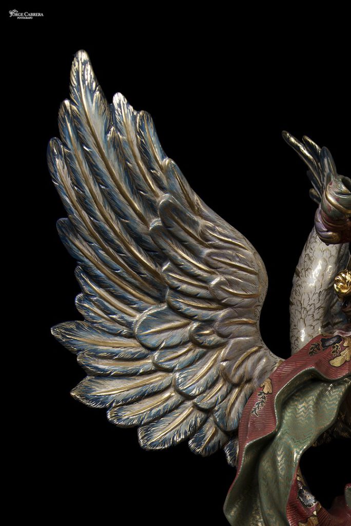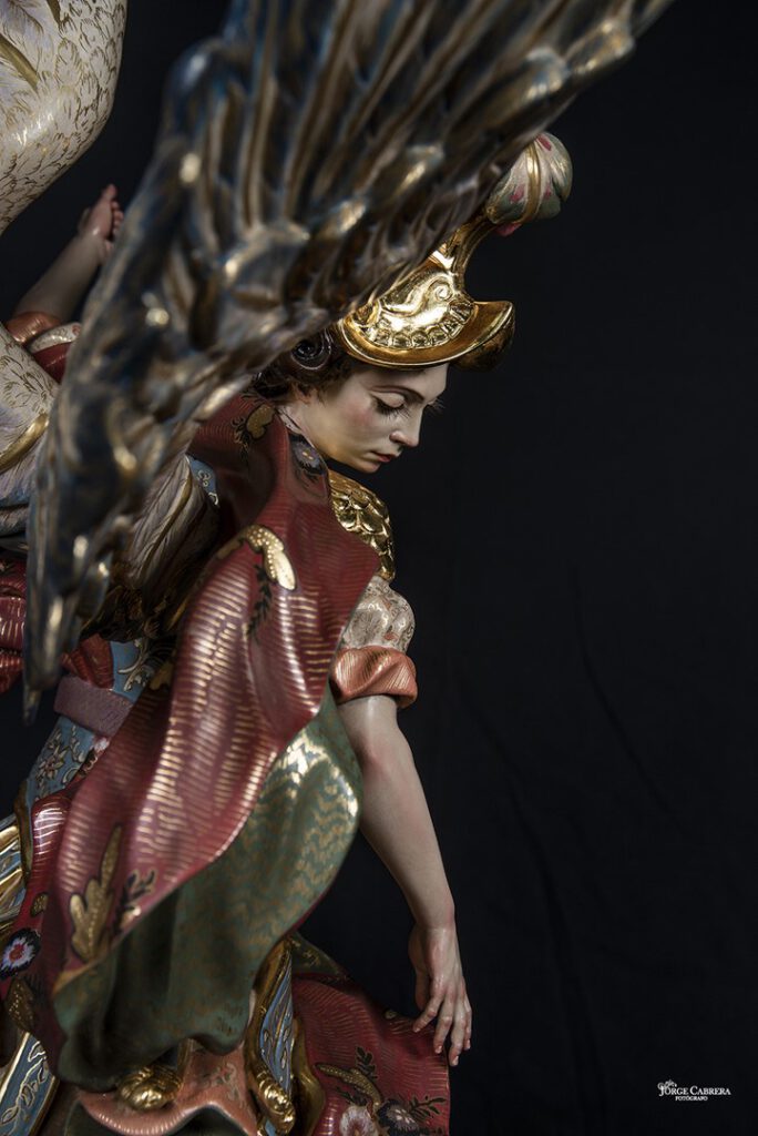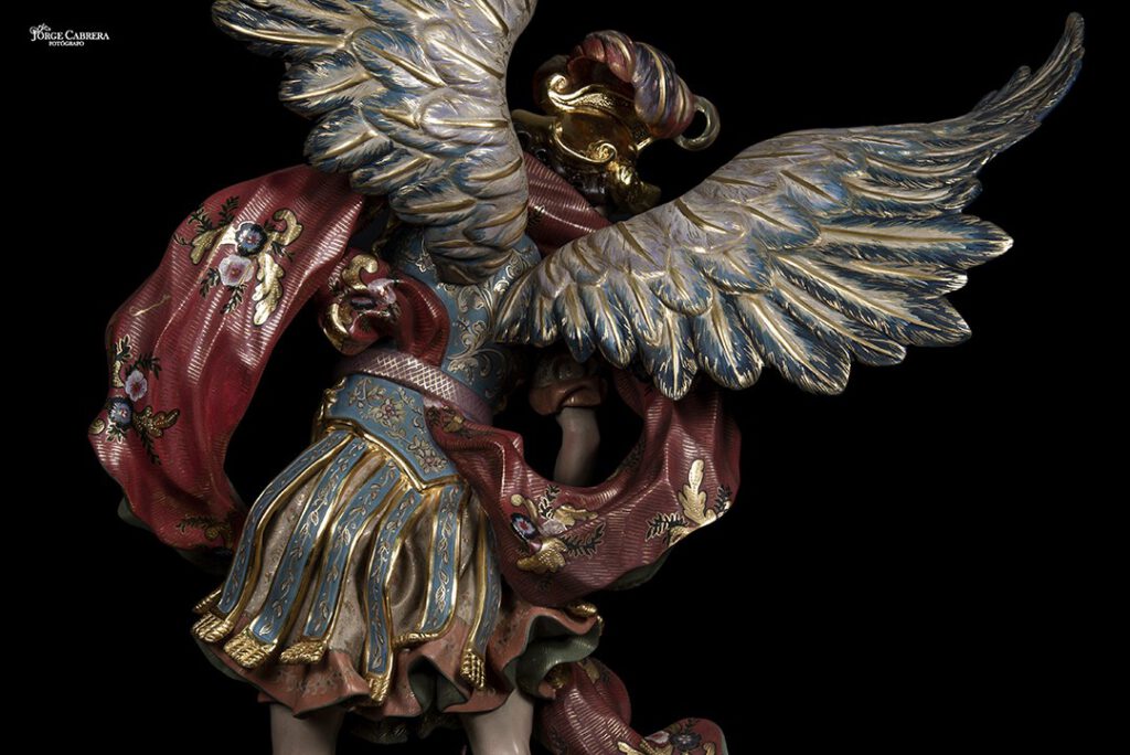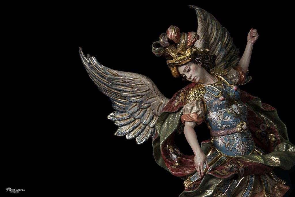 Estos cuatro Arcángeles fueron encargados a finales de 2016 para entregarlos esta cuaresma de 2020 y que se han llevado poco a poco, ya que son unas piezas de muchísimo trabajo y delicadeza, tienen una altura de 70cm, talladas en madera de cedro real, dorados, estucados y decorados al temple, cincelado y por último policromado al óleo.