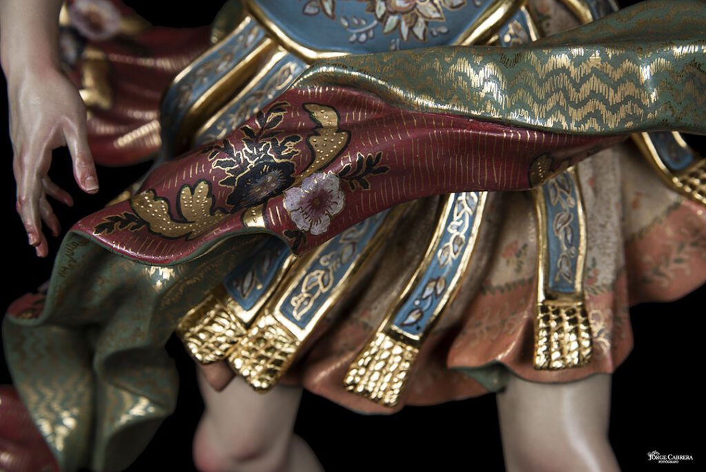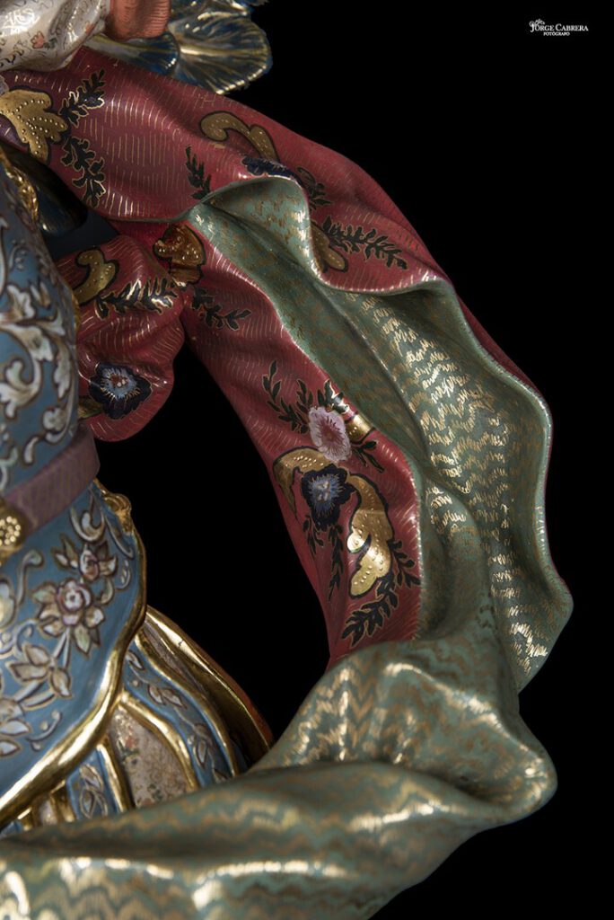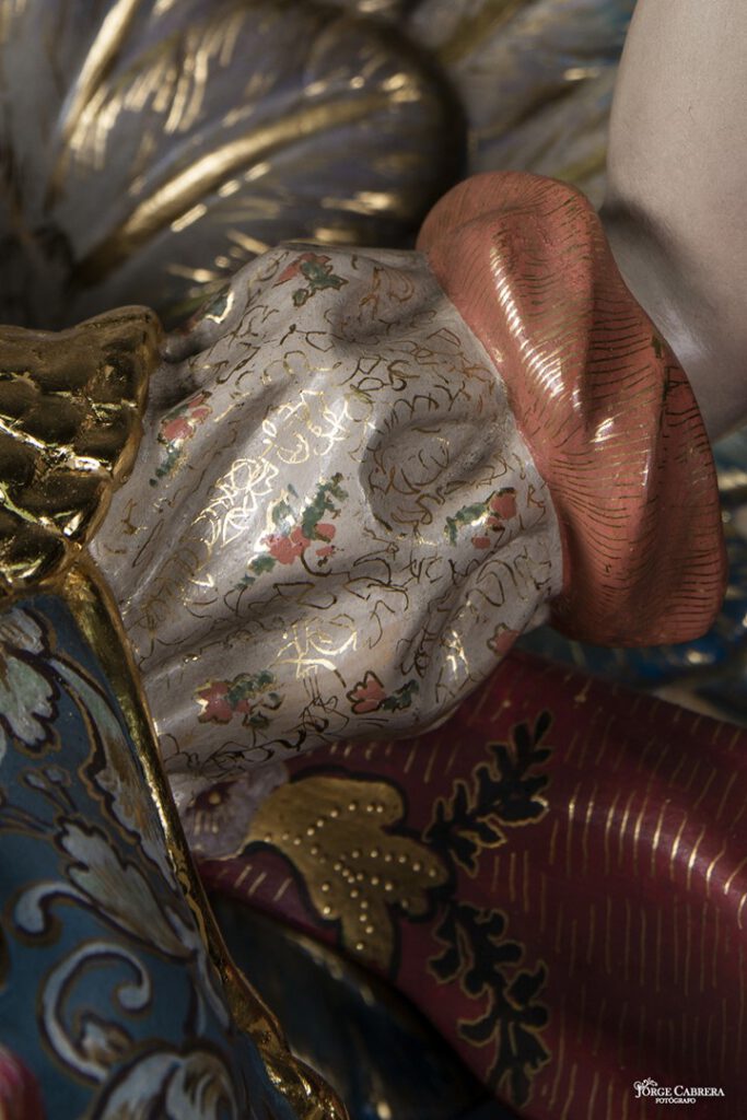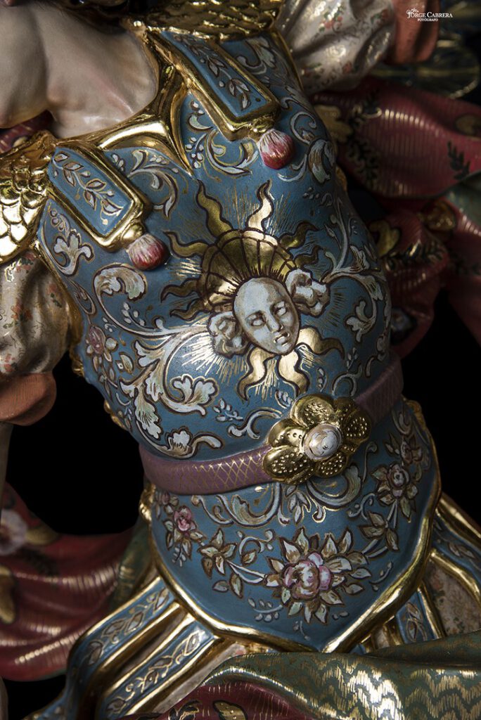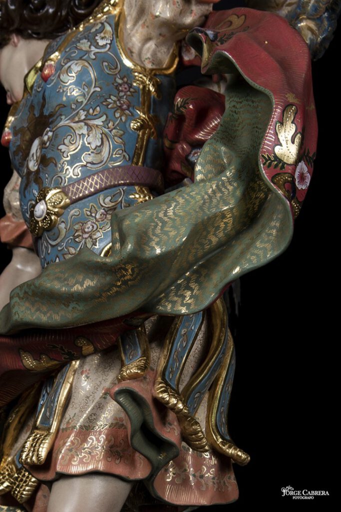 La labor de estofado y decoración, gracias a Dios vuelve a ser desde el diseño hasta terminar la obra de estofado por mi gran amigo y maravilloso Artista, Pintor y decorador, D. MANUEL PEÑA SUÁREZ, al que no tengo palabras de agradecimiento por la genialidad que ha vuelto hacer en mi obra, en estos cuatro Arcángeles, su arte, sensibilidad, decoraciones y color a mi obra, nos volvemos a fundir Maestro Pintor y Escultor, gracias de todo corazón D. MANUEL PEÑA, por tu trabajo e inmensa dedicación con mi humilde obra, tú la haces grande, con tus pinceles y tu creatividad, no me cabe la menor duda que será objeto de alabanza por todas las personas que lo contemplen ahora, con el paso de los años y siglos, as llevado la técnica de la decoración y estofados a la cotas más altas del arte religioso ¡¡¡¡GRACIASSSS!!!!.